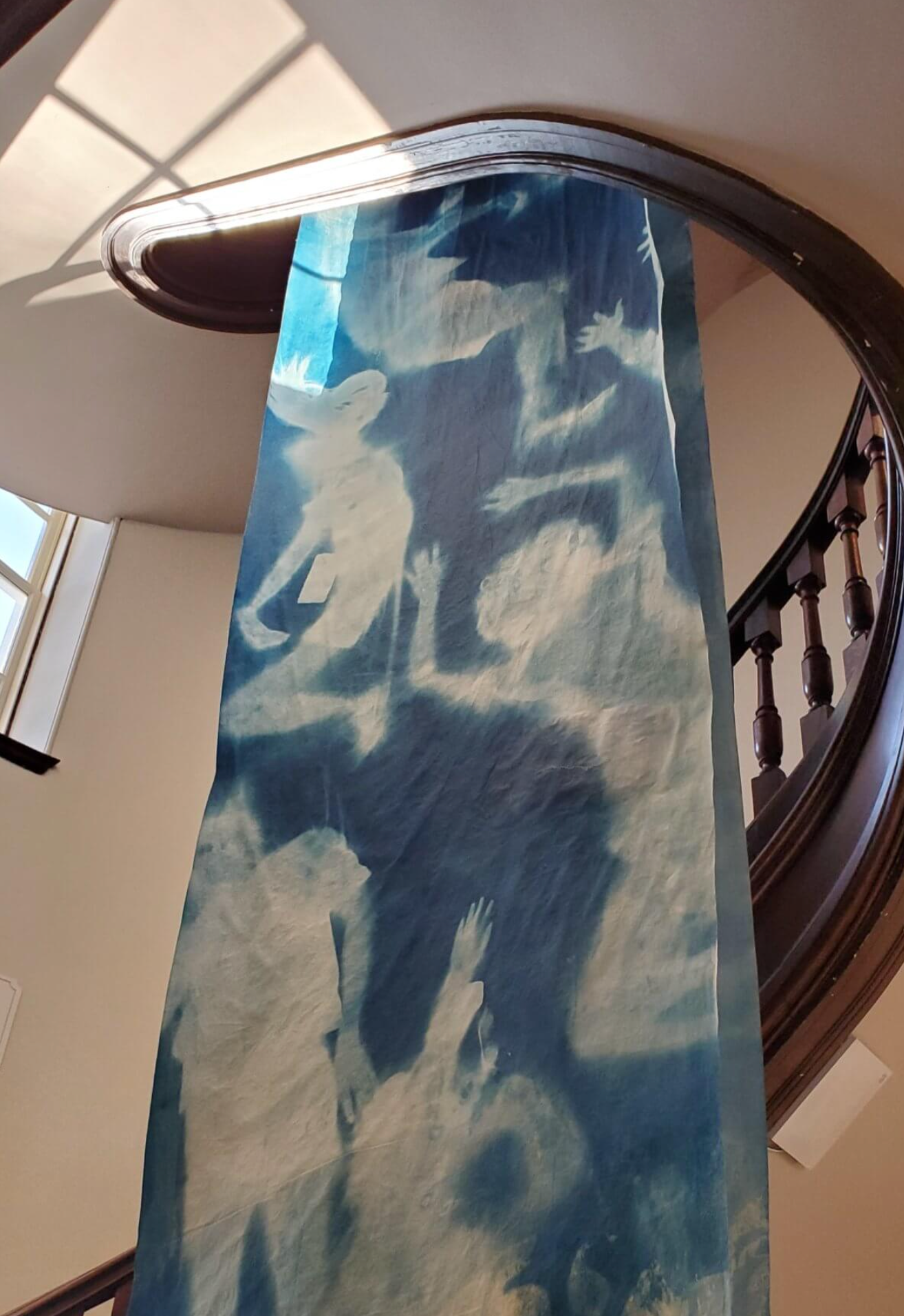 Margaret Schedel with FluxFringe performing a live score for Han Qin’s “Ride the Wave”, featuring Maxime Esformes on electric guitar, Schedel on electric cello, and August Sheehy on bass and electronics, captivating video installation showing know at #leekrasner ‘s dining room at Pollock Krasner House.